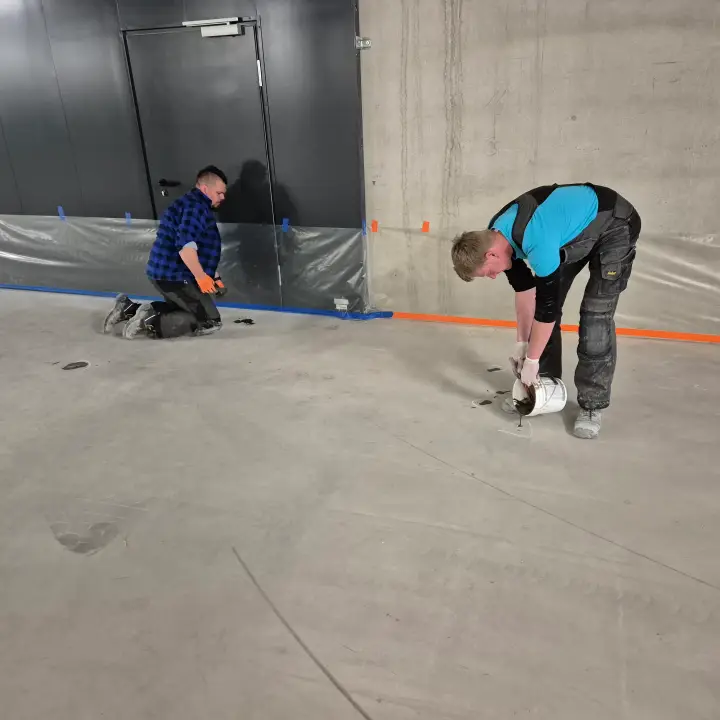 After cleaning and leveling the substrate, we repair any damage or defects in the floor. Standard industrial floor repairs include filling in cracks, repairing minor or major concrete damage, hammering cinch bolts, filling holes with lowviscosity resins, rebuilding arris of sawcut joints, and replacing contraction joint fillings. We use fast-setting repair materials that guarantee excellent adhesion to the substrate. The repair methods and products used depend mainly on the floor finish chosen by the customers.