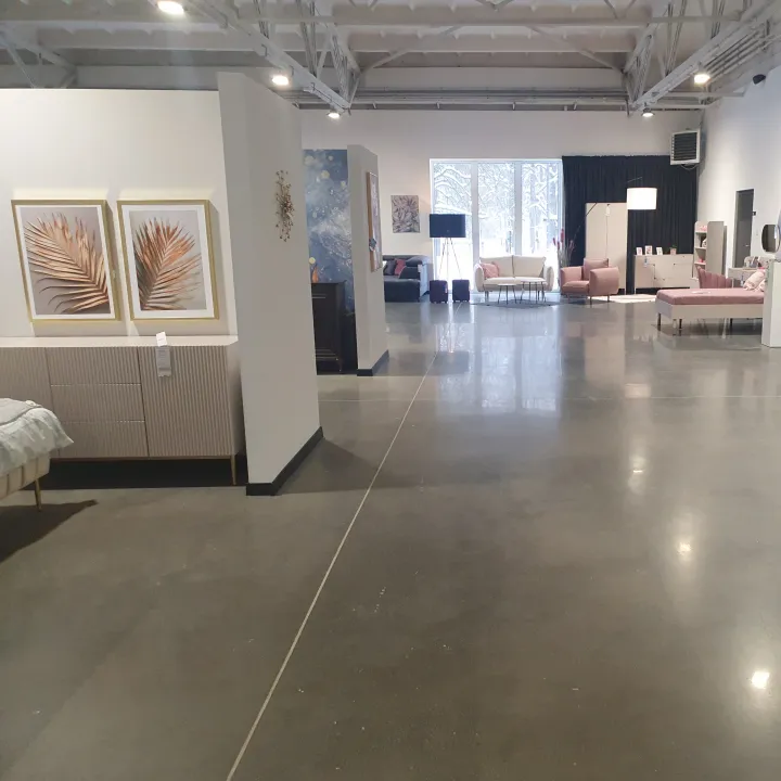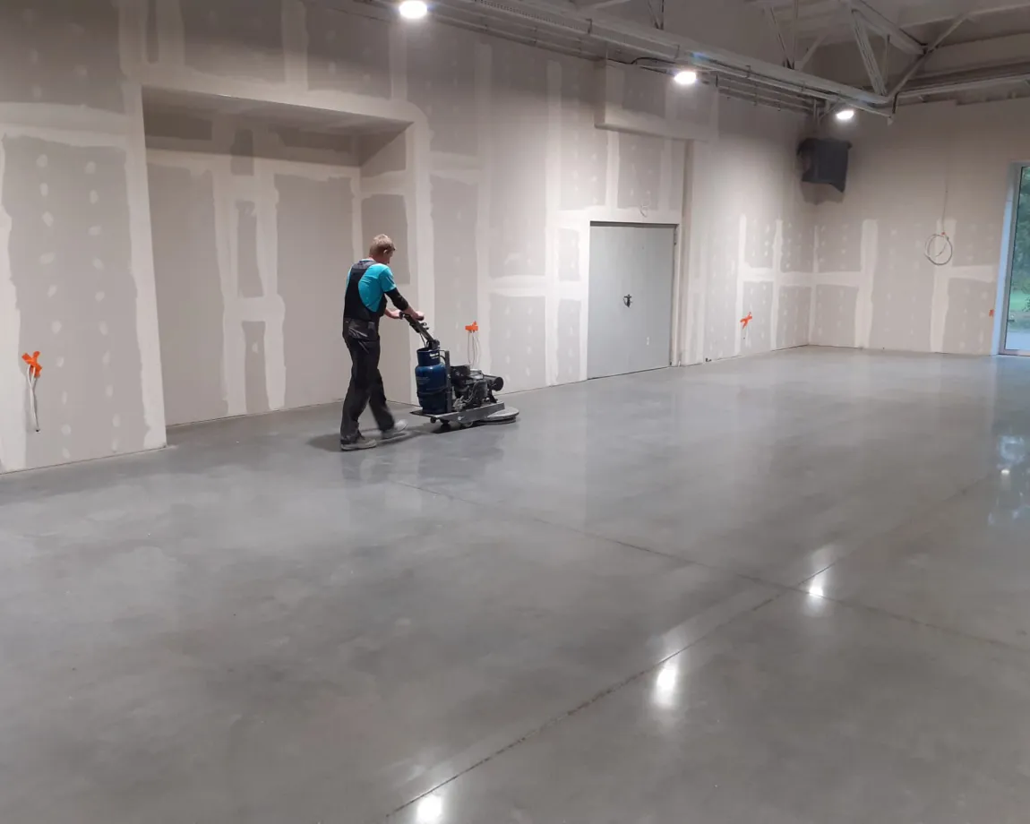 Concrete floor polishing at the “Po Prostu Meble” showroom. Modern design in a historic setting in Świerklaniec.